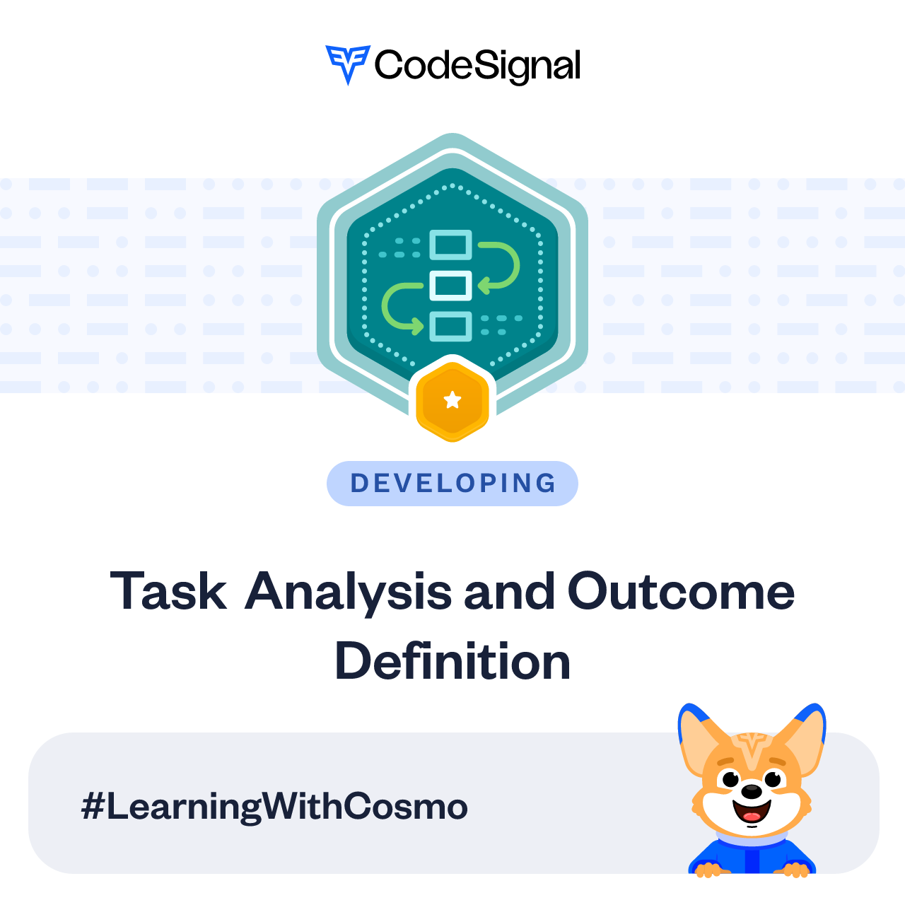 I earned a badge: Task Analysis and Outcome Definition | CodeSignal Learn