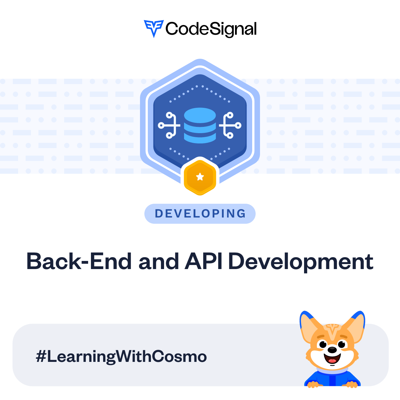 I earned a badge: Back-End and API Development | CodeSignal Learn