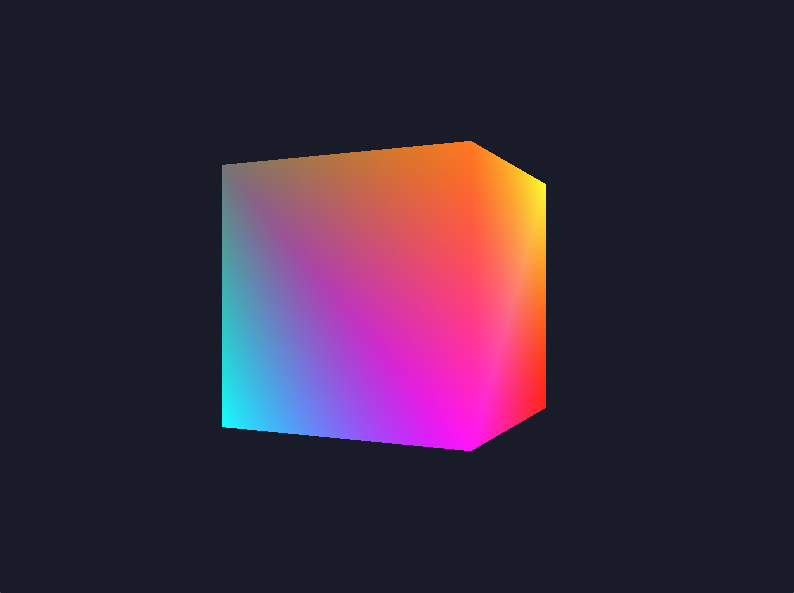 Our cube consists of 8 vertices positioned at the corners of a unit cube centered at the origin. Each vertex includes both 3D position data and RGB color information, creating a vibrant, multi-colored cube where each corner displays a distinct color.