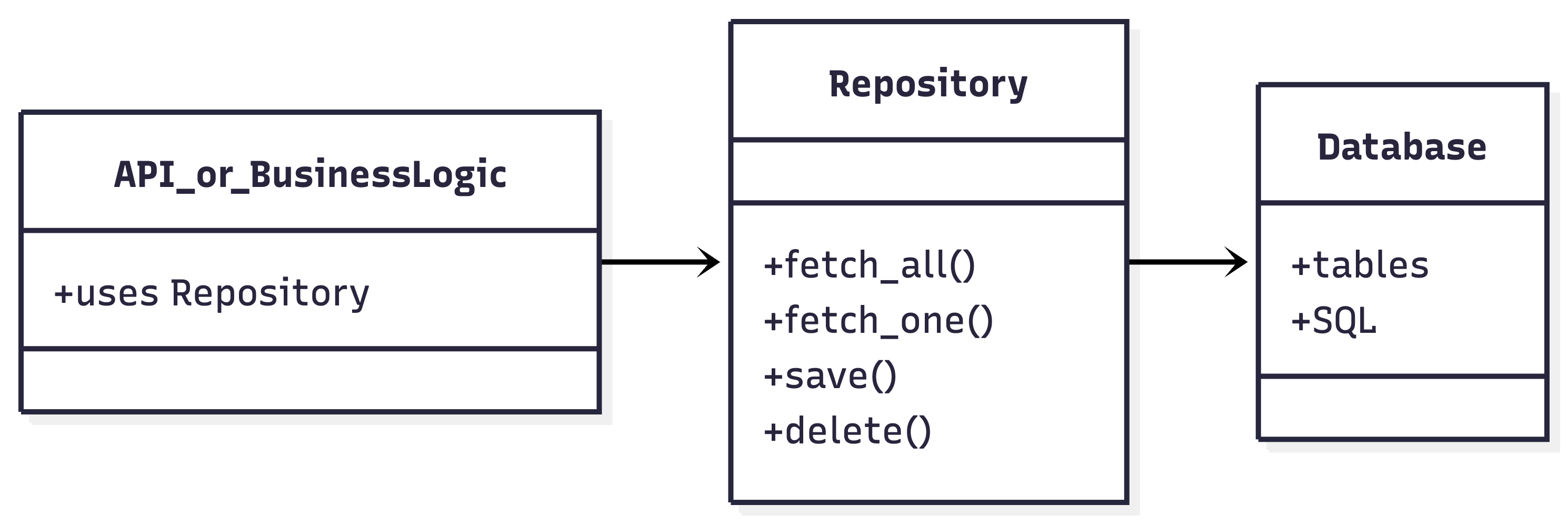 - API or Business Logic: Calls methods on the repository (e.g.,