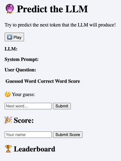 Welcome back! In the last lesson, you built the main HTML template for the LLM Prediction Game. That gave us the structure of the page, but right now, it probably looks very plain — just black text on a white background, with no special layout or colors.