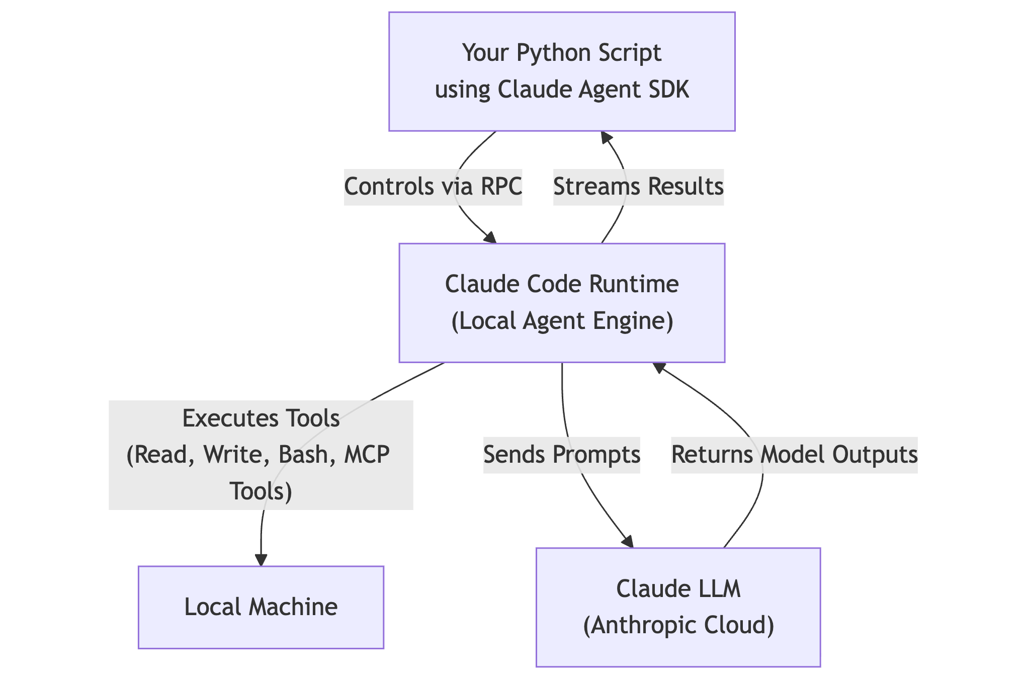 Understanding this separation of concerns is fundamental to working effectively with the SDK. Your Python script orchestrates the high-level behavior, the local runtime provides the execution environment and tool capabilities, and the cloud-based language model supplies the reasoning and intelligence. Each component plays a distinct role, and together they create a powerful system where AI can understand complex tasks and execute them on your local machine.