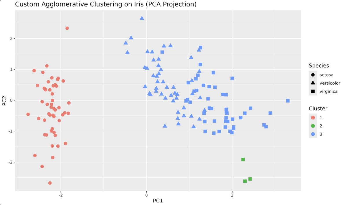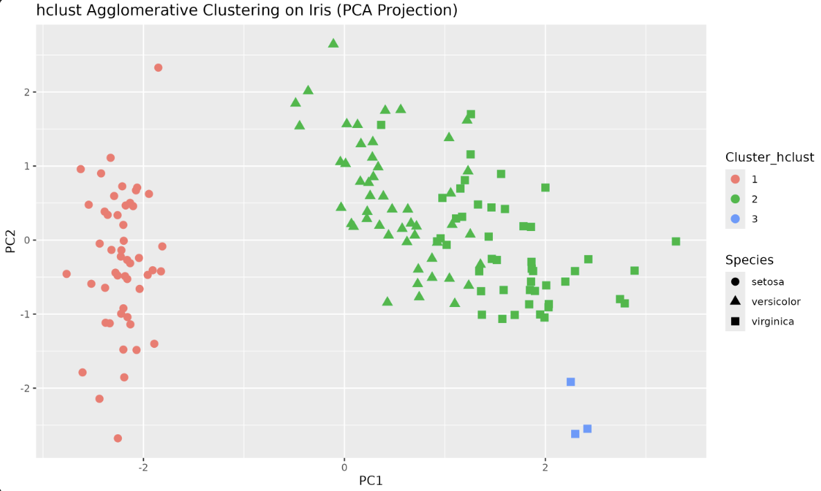 R provides an optimized, efficient implementation of Hierarchical Clustering through the hclust() function. Let's try it with our Iris dataset.
