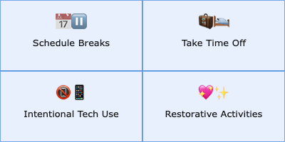Here are four practical, research-backed strategies you can start using right away to help you recharge and prevent burnout. Try experimenting with each one to discover what works best for you and your lifestyle.