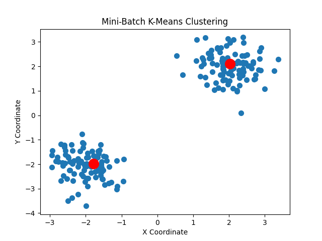Before implementing mini-batch k-means, we need to generate a dataset and define some helper functions. In this example, we will create two clusters of 2D points using random number generation in C++. We will also define functions to compute the Euclidean distance and to randomly initialize cluster centers.